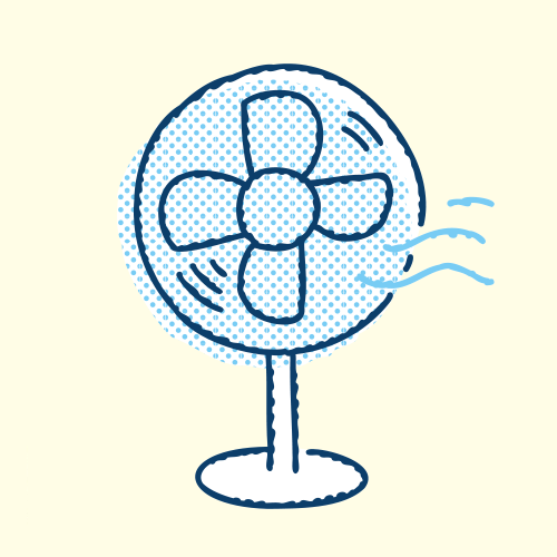 暖かい空気は上にたまりやすいので、扇風機を上向きにすれば、サーキュレータ―がなくても暖かな空気が下に降りてきます。